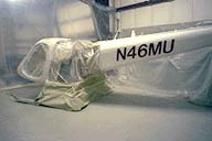 The stripes have been painted on, and the doors and engine cowling are being put back on: